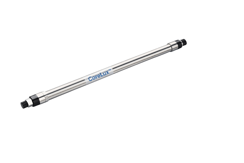 CoreLux™ columns utilize superficially porous particles featuring a solid, non-porous core surrounded by a thin porous shell. This advanced morphology significantly reduces diffusion distance, resulting in higher efficiency, narrower peak widths, and improved plate counts—all while operating at lower back pressure compared to fully porous particles.